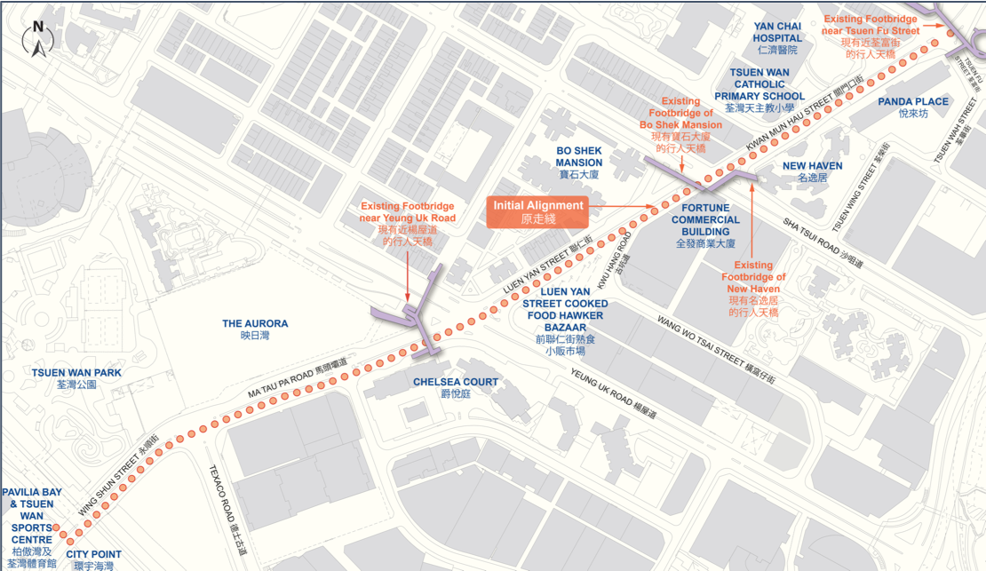 本工程項目的行人通道走綫位於荃灣南(點擊以放大)。