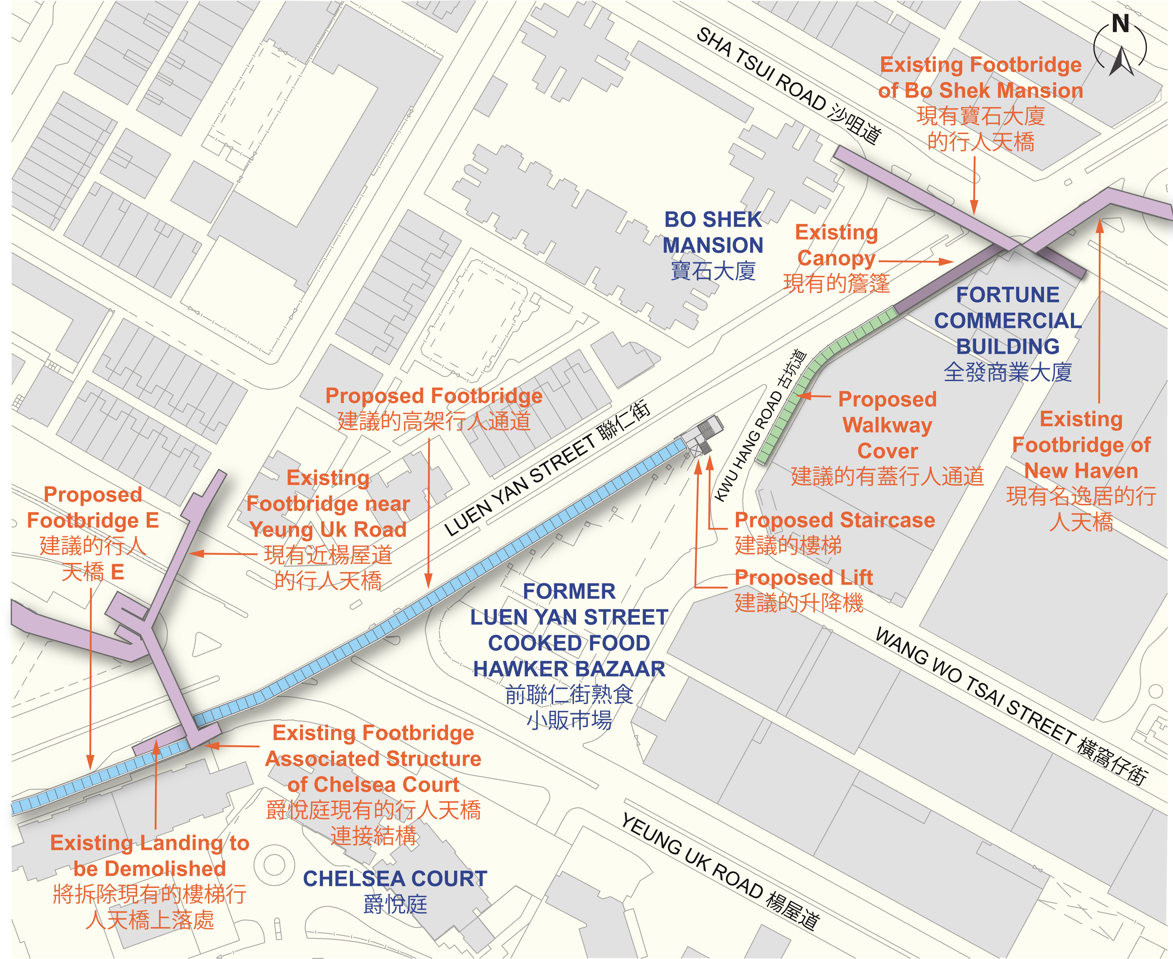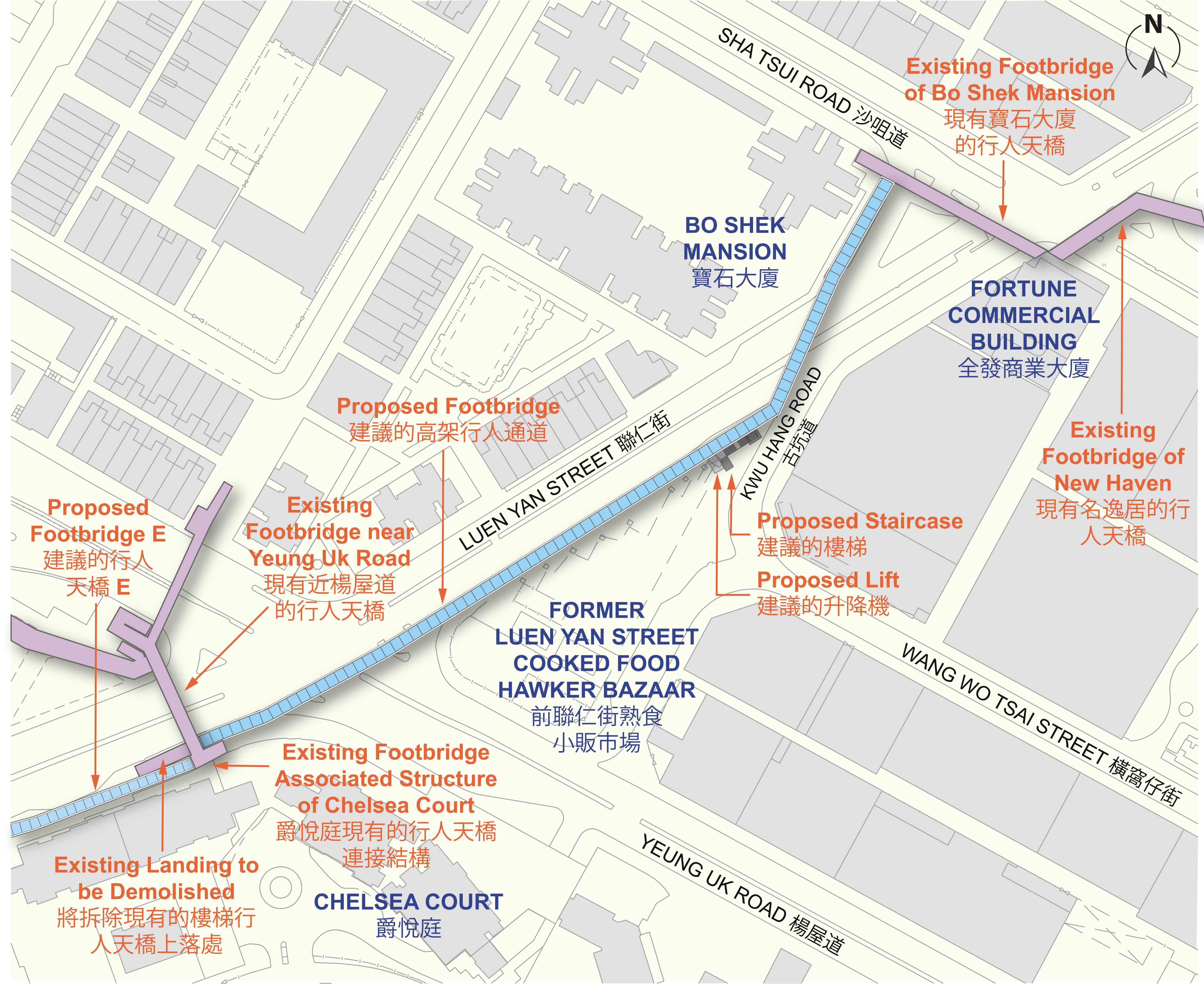 - 涉及改建近寶石大廈及爵悅庭現有的行人天橋
