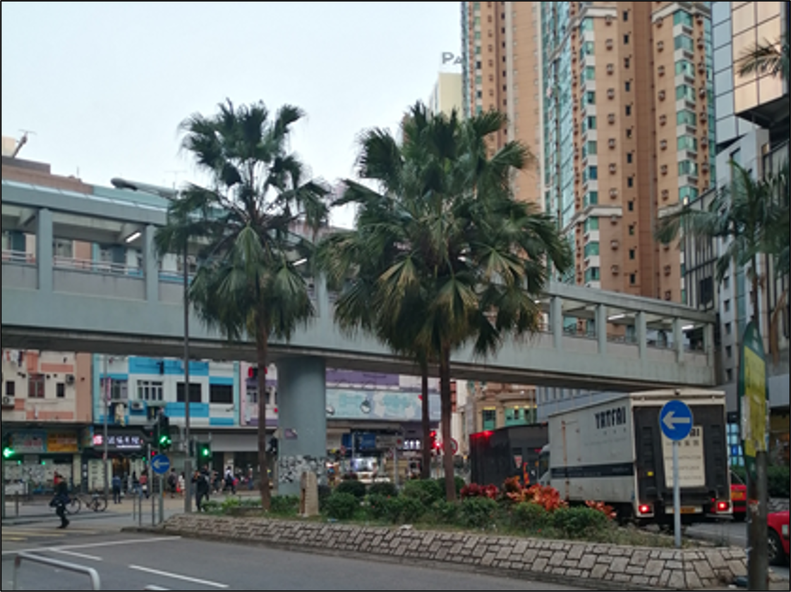 - 橫跨聯仁街的高架行人通道和上落處的建造需要移除或移植現有的樹木